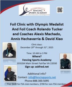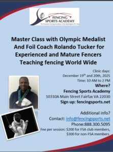 Foil Clinic with olympic Medalist and foil coach rolando tucker and coaches alexis machado, annis hechavarria & David xiao